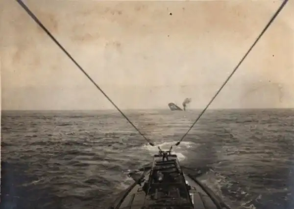 Германская подводная лодка затопила торговый корабль в Атлантике, 1915 год.
