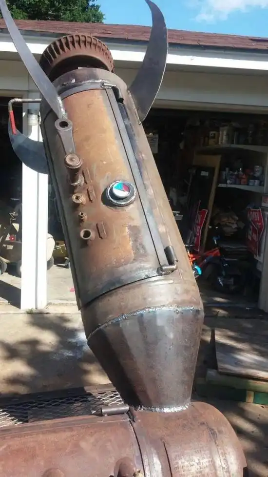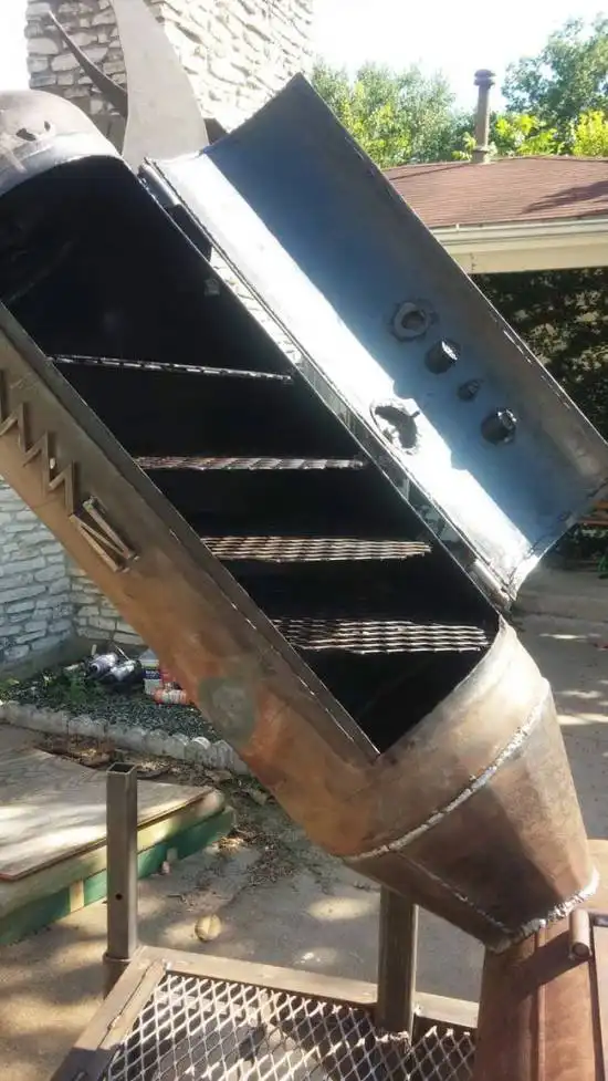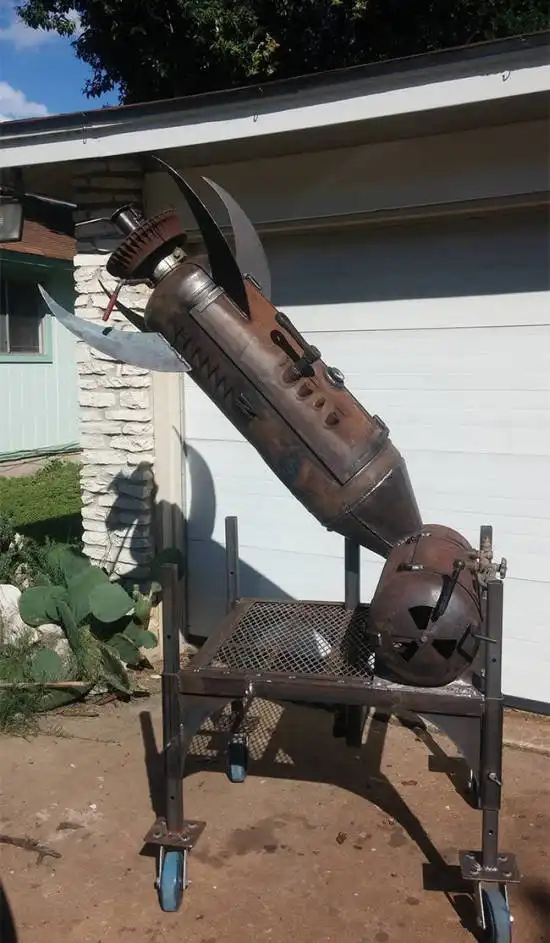 Руками одного иностранного народного умельца была собрана эта уникальная коптильня. Все что потребовалось для сборки - металлолом, который валялся в гараже. А невероятный дизайн был навеян любовью сына к ракетам.