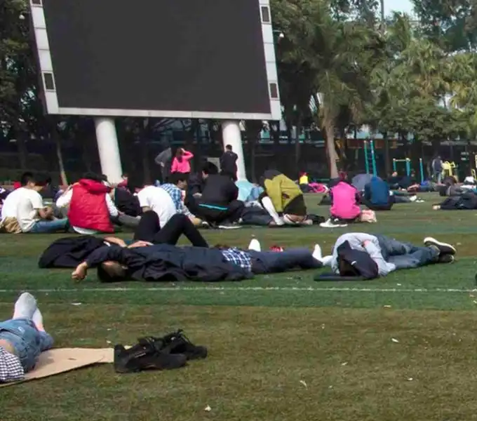 Тайваньская компания Foxconn, являющаяся крупнейшим производителем электроники в мире, не на шутку эксплуатирует своих работников. Вот так уставшие бедняги, трудящиеся на этом предприятии, проводят свой обеденный перерыв. Впереди еще половина рабочего дня, а люди уже «выжаты», как лимоны.