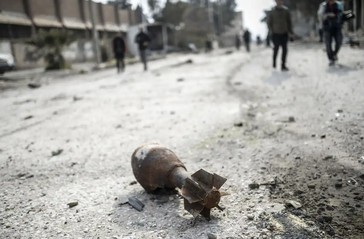 Раненый курд из отряда народной самообороны и снаряд, Кобани, Сирия, 28 января 2015.