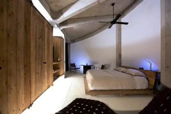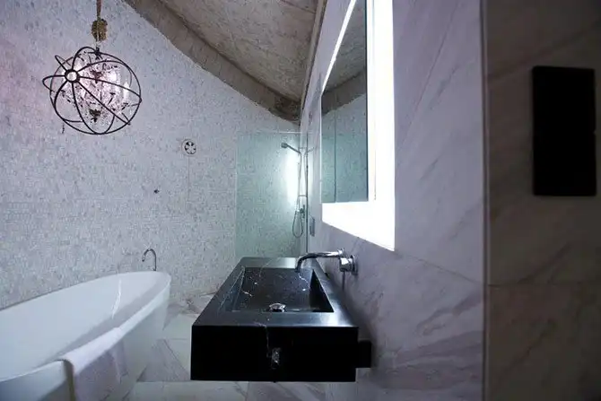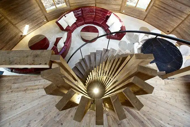 Особенность дома-купола состоит в том, что он лишен несущих опор и стен в прямом их понимании. Вся нагрузка приходится на сам купол. Кстати, он построен из специального дерева. Вся мебель была специально заказана, с учетом круглого внутреннего пространства, чтобы не создавалось впечатления инородности интерьера. Однако, главной задачей подобного проекта, считает Тимоти Аултон (Timothy Oulton), создание уникального места, где гармония во всем будет подталкивать дизайнера на новые творческие достижения.