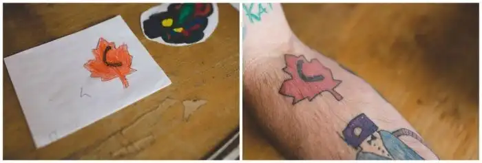 Житель канадского города Питерборо, провинция Онтарио, Кейт Андерсон украшает свое тело татуировками, копирующими рисунки его сына. Ежегодно мужчина наносит себе на руку по одному красочному изображению, автором которого является его ребенок. Началось это тогда, когда мальчику было четыре года. Раньше татуировки наносили мастера, но последнюю татуировку отцу помог нанести его сын. Сам Кейт Андерсон говорит, что будет продолжать эту затею до тех пор, пока это не надоест его сыну.