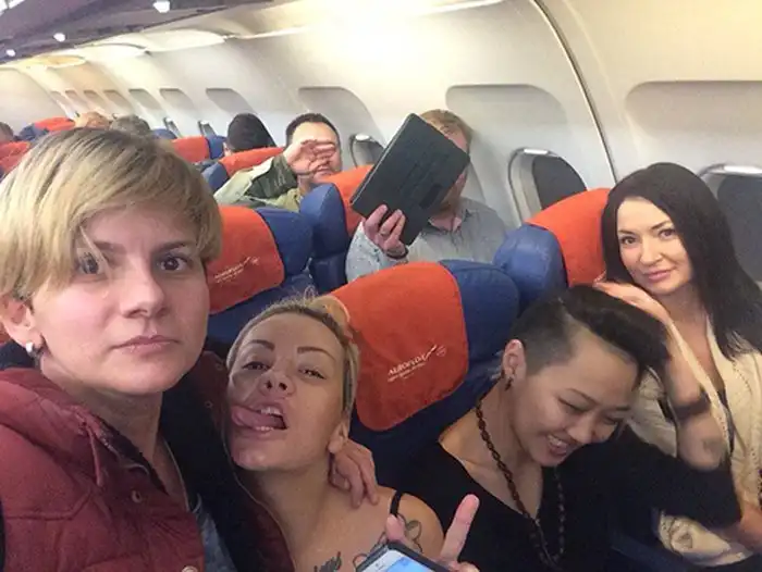 В кадре мы видим одну из руководительниц клуба Infinity Ксению. В подписи под фото, которая девушка разметила на своей странице в соцсети, написано: «Это правда Милонов! Волею судеб его посадили на следующий ряд. Летели мы из Москвы в Петербург. Сам Милонов нам ничего не сказал. Мы устроили фотосессию на его фоне. Когда он это заметил, прикрылся планшетом. Мы очень счастливы. Он, наверное, не очень, да и пофиг!».