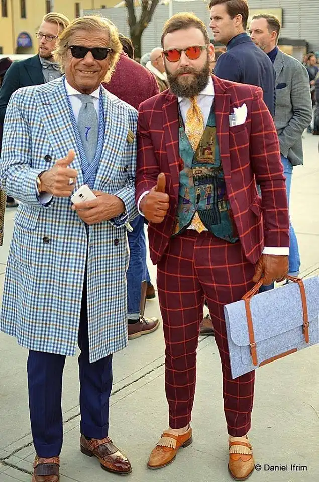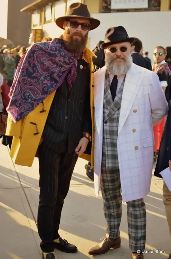 Всё больше модников обращают внимание на клетчатые пиджаки и пальто, можно говорить о том, что данный узор стал главным рисунком Pitti Uomo. Отметим, что почти все мужчины носят бороду. А как вам такая тенденция?