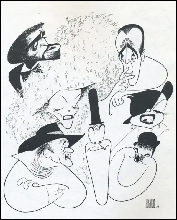 Ал Хиршфельд был знаменитейшим карикатуристом, рисовавшим всех знаменитостей, политиков и актеров, звезд шоу-бизнеса. Он всего нескольких месяцев не дожил до 100 лет и рабочий стаж его был больше 80 лет!
