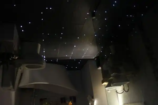 Оптическое волокно только звучит сложно, на самом деле это просто пластиковые прутья (PMMA), напоминающие рыболовную леску. Если на один конец этого волокна попадает луч света, то другой конец начинает светиться – получается световая точка. Если использовать несколько таких “прутьев”, то можно сделать звёздный пол!