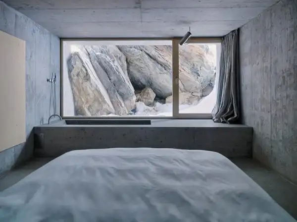 Немецкая архитектурная студия Nickisch Sano Walder Architekten воссоздала традиционную деревянную альпийскую хижину для отдыха Concrete Cabin недалеко от Граубюнден (Graubünden, Швейцария). Однако вместо бревен дизайнеры использовали бетон, напоминающий форму сруба. Такой необычный прием добавил строению своеобразную индивидуальность.