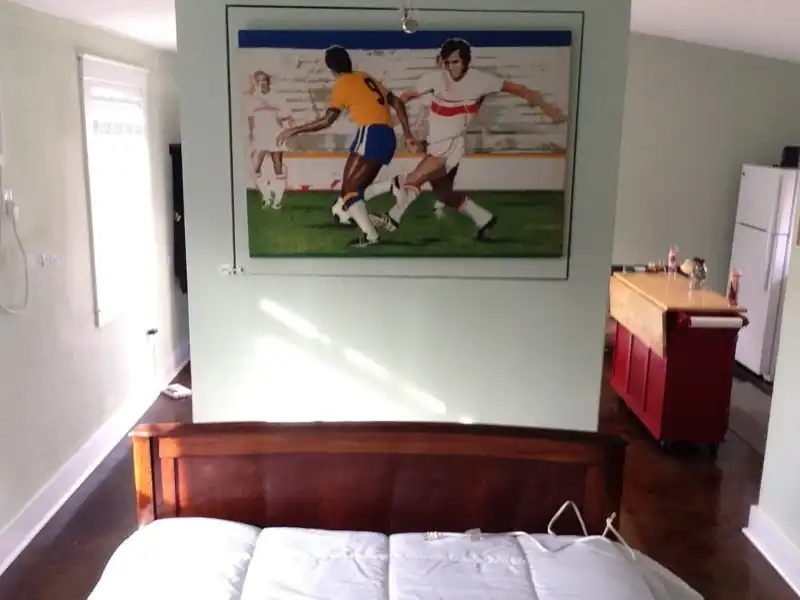 Несмотря на то, что кухня, гостиная, спальня и душ находятся в одном помещении, жилье получилось очень годное.