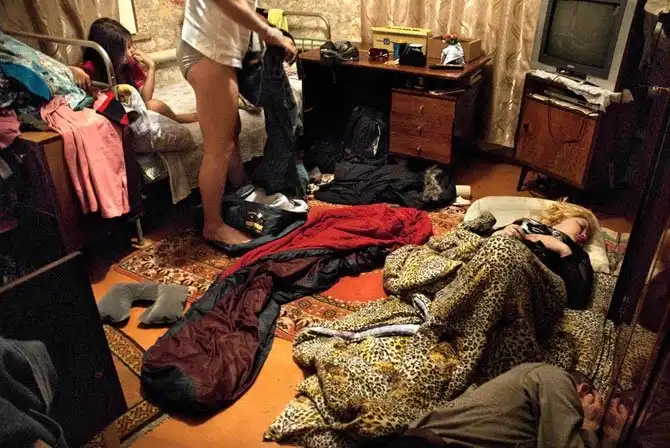 Голландский фотограф Бике Депоортер выходила на случайных маленьких станциях вдоль Транссибирской магистрали и просила людей приютить ее на ночь. Для этого она показывала листок бумаги, на котором было написано: «Я ищу, где переночевать, у меня нет денег на гостиницу, и я хочу узнать, как живут русские».