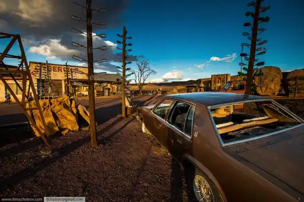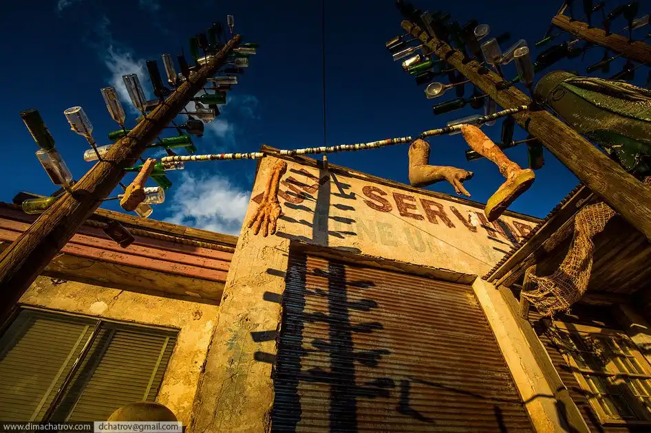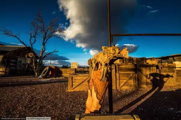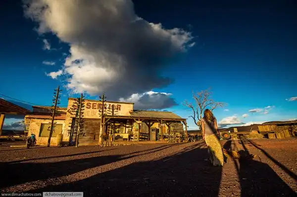 Крохотная бензоколонка, построенная по всем законам Американского дикого запада - она и стоит возле трассы, больше подходящей под реалии Америки. Аризона? Юта? Кинговский штат Мэн? На самом деле это Марокко, место съемки и декорации нескольких фильмов ужасов. Из всех там упомянутых, я знаю лишь "И у холмов есть глаза".