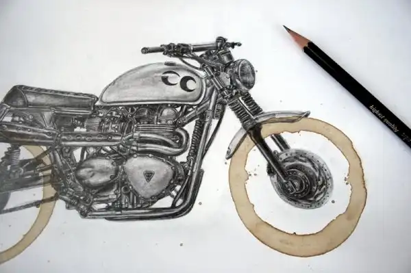 Даже столь бесполезное в быту явление, как отпечаток своей чашки с кофе можно превратить в повод для отличного инстаграма. Основная тема в рисунках иллюстратора из Калифорнии Картера Асманна (Carter Asmann) - мотоциклы и машины. Контраст между строгой графической прорисовкой и небрежными отпечатками кофейной чашки завораживает.