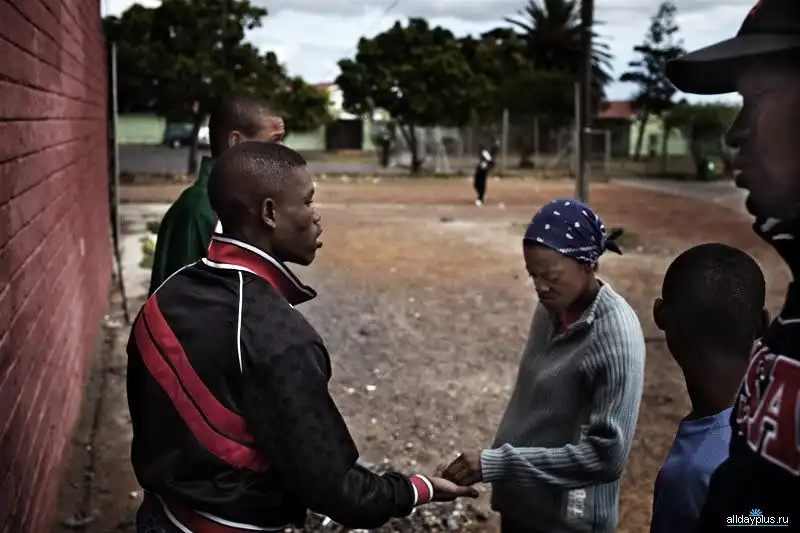 Вообще банды в ЮАР начали появляться еще в 1950-ые, но апартеид весьма успешно с ними боролся. А потом власть белых в стране закончилась, с ней закончился и порядок. Появились десятки крупных бандитских сообществ, которые брали на вооружение передовой опыт коллег из Латинской Америки. Первым делом были придуманы громкие и загадочные названия: Mongrels, Playboys, Naughty Boys, Hard Livings, Junkie Funkies и Corner Boys, своя атрибутика, своды законов и кодексы чести. Приличный южноафриканский бандит должен иметь большую пушку, крутые (по местным меркам) татуировки и как можно больше золота. В остальном же это обычные гопники с пистолетами и дробовиками, которые всё время потягивают пиво, изредка отвлекаясь на гоп-стоп и разборки между бандами.