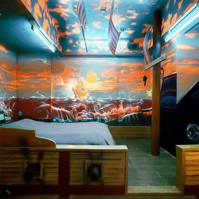 Фотограф Мисти Кислер создала серию снимков, где можно увидеть затейливые интерьеры отелей для любви. Каждая комната отражает какую-то фантазию, не всегда понятную с первого взгляда. Здесь есть и поезд метро, и школьная аудитория, и детская комната в стиле Hello Kitty, и тюрьма. Каждый найдет то, что ему больше всего нравится.