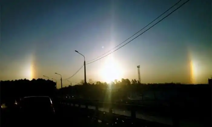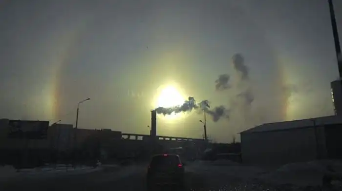 Сегодняшним утром жители города Челябинск стали свидетелями редкого природного явления под названием гало. В небе над городом появилось сразу «три светила». Фотографии быстро заполонили социальные сети, а само явление стало главной темой дня для всех горожан.