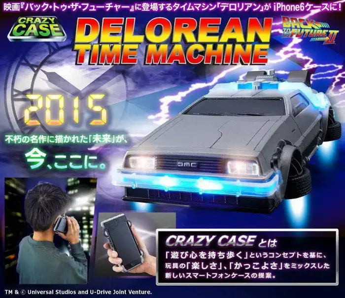 Чехол в виде машины DeLorean DMC-12, которая служила прообразом машины времени из «Назад в будущее», легко надевается на телефон и преображает его в культовую тачку. Такой чехол имеет светодиоды, делающие его еще больше похожим на оригинал из фильма.