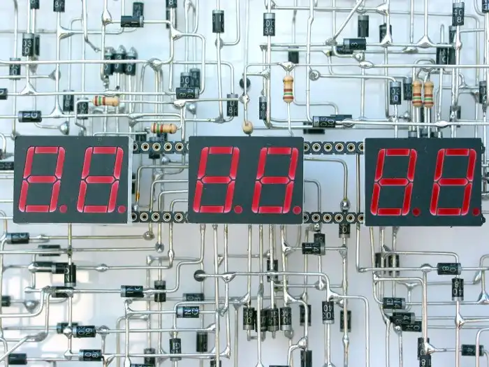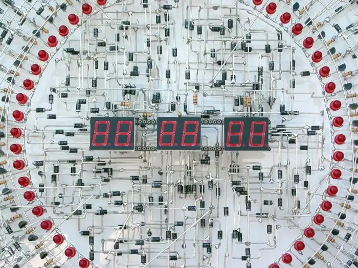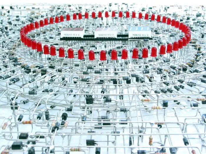 Парень по имени Гислаин Беноит (Gislain Benoit) решил создать нечто впечатляющее и потратил 3 года своей жизни на изготовление уникальных электронных часов. На оргстекле толщиной 3 мм были установлены 1161 диод, 340 транзисторов, 346 сопротивлений, красные светодиоды в количестве 60 штук, 6 магнитных переключателей и 3 индикатора. Устройство работает от сети 120 вольт, весит более 6 кг и имеет следующие габариты: высота - 56 см, ширина - 66 см и толщина 5 см.