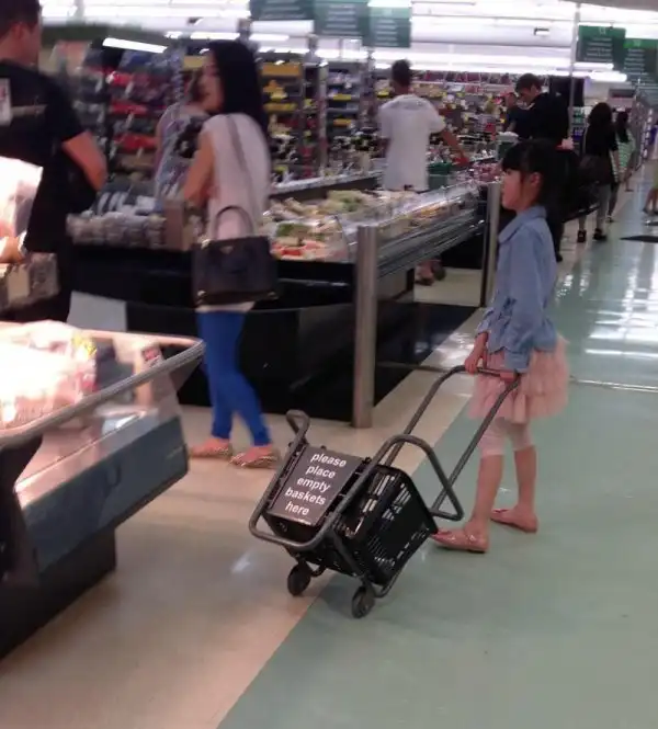 Представляете, как они таскают по супермаркету эти металлические подставки с характерным звуком от пола? Упорству глупых нет предела. Но некоторым везло - в их супермаркетах подставки оказывались с колёсиками....