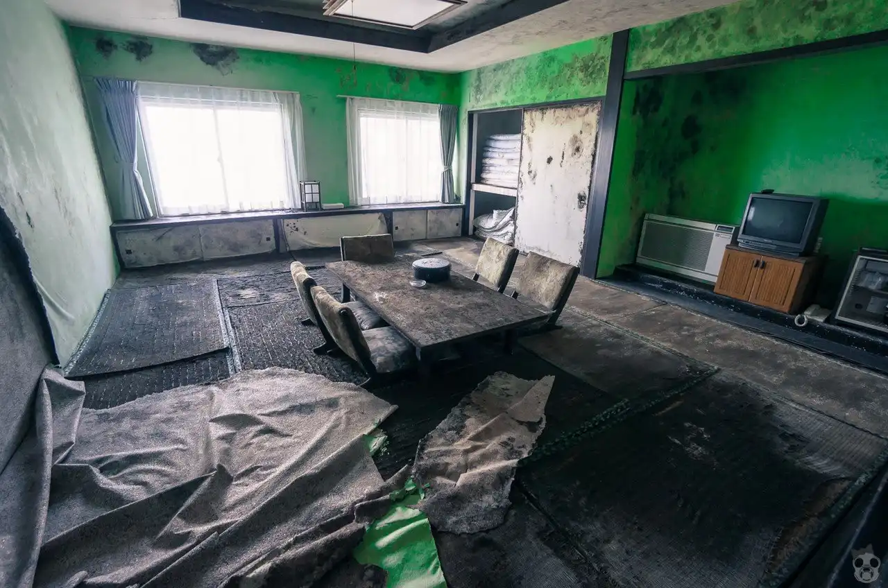 Обратите внимание, что гостиница выглядит не так уж и плохо, поскольку находится на острове и недоступна для бытового посещения и разграбления. А потом, это все-таки Япония…