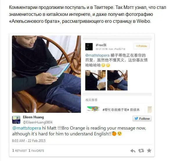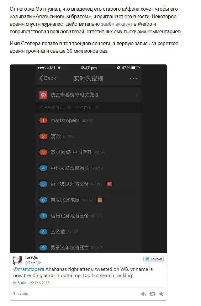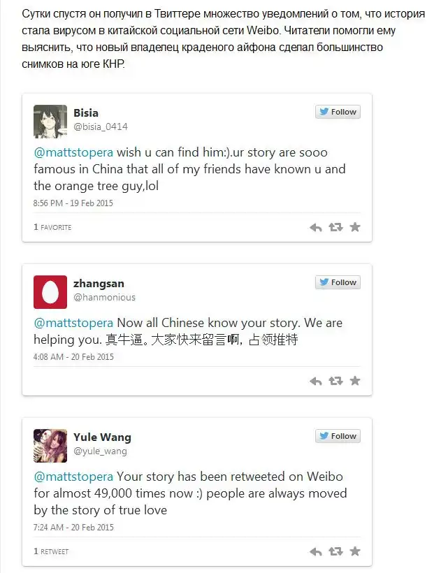 История с кражей смартфона iPhone сделала жителя Нью-Йорка Мэтта Стопера (Matt Stopera) настоящей звездой интернета, особую популярность история обрела в Китае, куда вскоре и собирается отправиться парень.