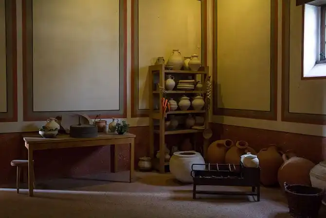 Восстановлены несколько зданий, в том числе типичная римская вилла, со всем интерьером.