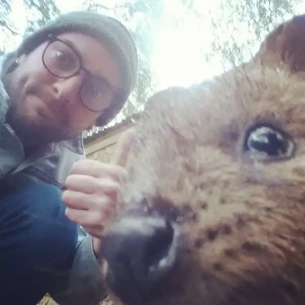 Австралийское сумчатое животное квокка, которое занесено в международную Красную книгу, очень дружелюбно и совершенно не боится людей. Эти очаровательные и всегда счастливые животные любят внимание к своей персоне, а еще они не меньше нас любят селфи.
