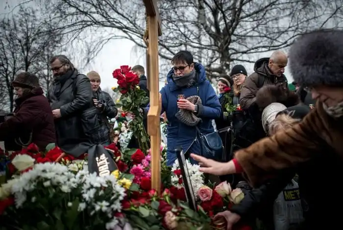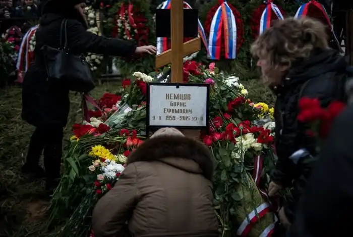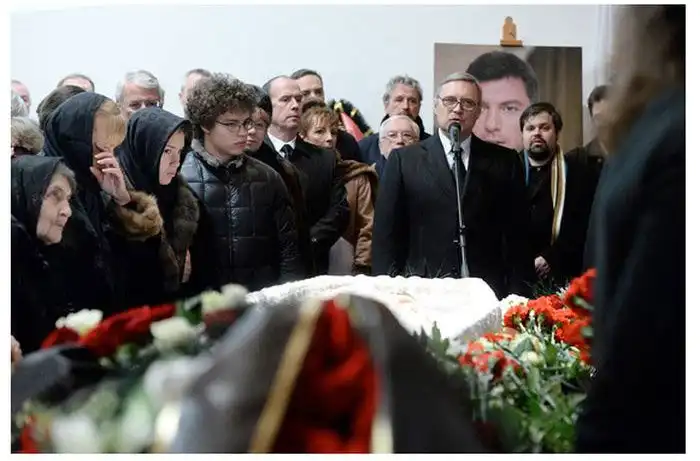 Сегодня днем в Москве прощались с убитым политиком Борисом Немцовым. Гражданская панихида проходила с 10 часов утра до 14 часов дня в Сахаровском центре. В 15:30 на Троекуровском кладбище началась похоронная процессия. Проститься с видным оппозиционером вместе с родственниками, друзьями и соратниками пришли чиновники и гости из ближнего и дальнего зарубежья.