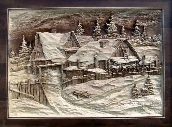 Резные картины из дерева семьи Дубовик, проживающих в Брянске. Они начали свое дело в 1996 году.