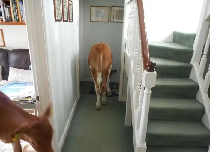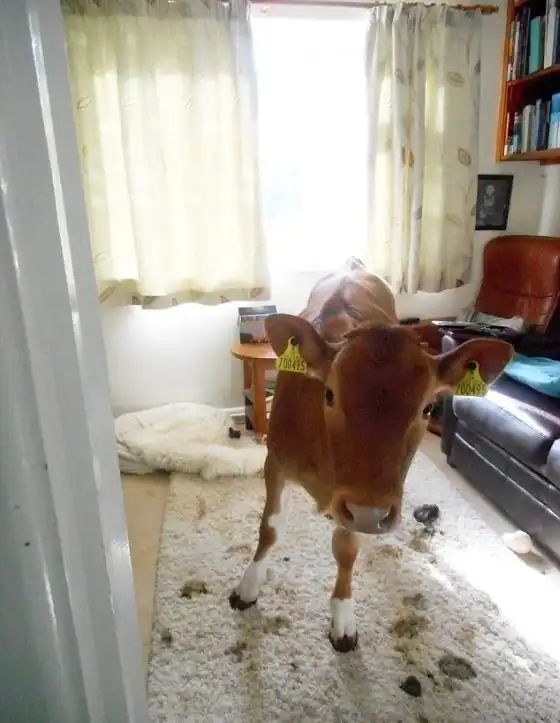 70-летняя Пэт Костен (Pat Costen), проживающая на острове Гернси, Великобритания, и занимающаяся разведением коров, обнаружила в своем доме незваных гостей. Пожилая женщина отправилась в душ и не заперла входную дверь в дом, чем воспользовались две ее коровы. Животные открыли дверь и вошли внутрь дома, а потом начали его обследовать. Когда хозяйка вышла из дома она учуяла специфический запах, а потом и обнаружила коров, стоявших в маленькой комнате с телевизором. На ковре пенсионерки коровы оставили о себе неприятные напоминания.