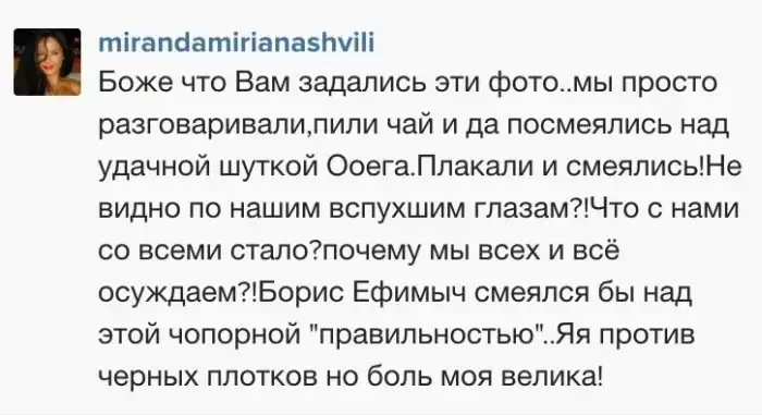 Пока видные оппозиционеры повсюду рассказывают о своем горе в связи с убийством Бориса Немцова, их страницы в социальных сетях свидетельствуют об обратном. Предлагаем взглянуть на то, как «оплакивающие» гибель политика оппозиционные деятели проводят время. Эти фото были выложены певицей Мирандой Мирианашвили на ее странице в инстаграм. На фото вместе с Мирандой изображены веселящиеся Ксения Собчак и Владимир Познер.
