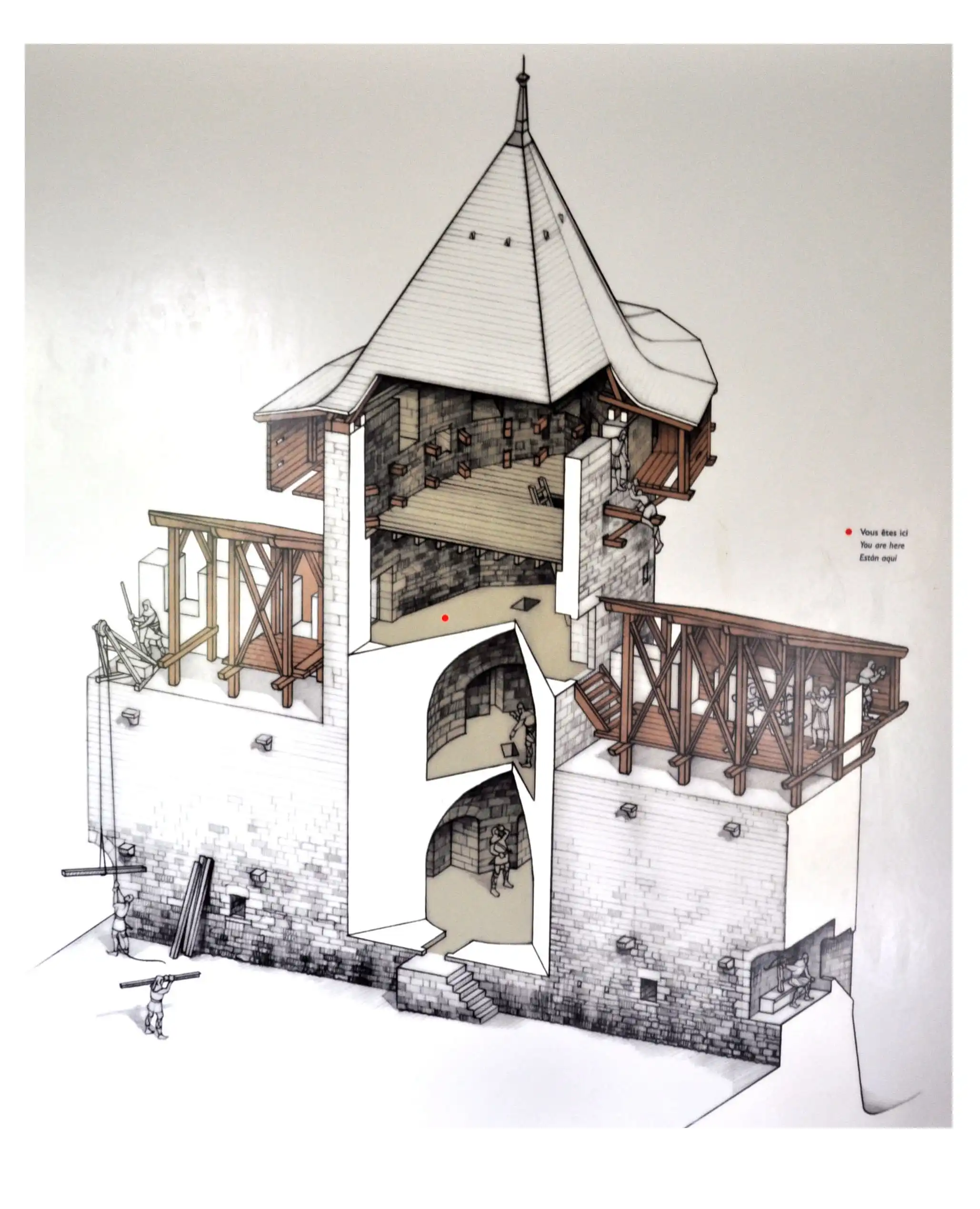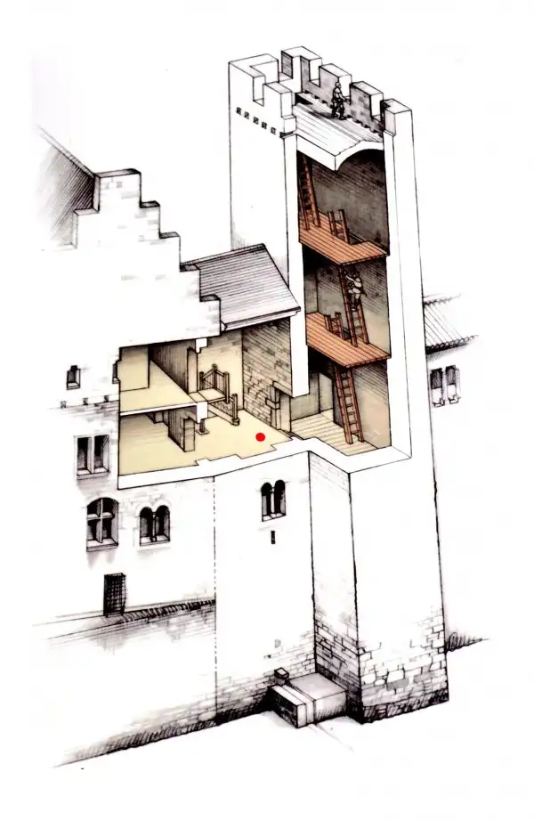 Решетки поднимались из двух разных помещений на разных уровнях башен, чтобы исключить проникновение в крепость. Даже если один из уровней башни, связанный с походами на стенах, оказался бы на время захвачен, это означало бы, что враг смог бы поднять только одну входную решетку.