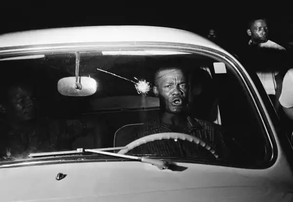 Ivory Ward, 43-х лет, сидит в своей машине с пулевым следом на её лобовом стекле, оставленном после выстрела, произведённого из грузовика белых мужчин, во время демонстрации афроамериканцев за интеграцию, 10 июня 1964 года, Санкт- Августин, штат Флорида. (AP Photo / JK)