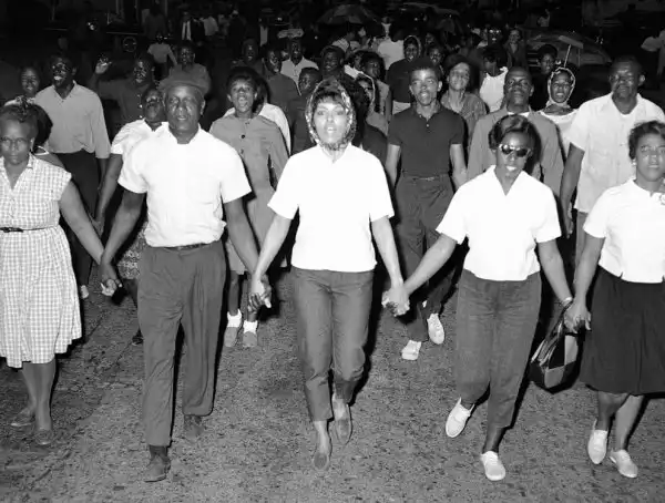 Чуть более полувека назад движение за гражданские права в Соединенных Штатах добилось большого успеха после долгих неудач в прошлом. Был подписан Закон о гражданских правах 1964 года, запрещающий дискриминацию по признакам расы, цвета кожи, религии, пола или национального происхождения, Однако, сегрегация оставалась нормой во многих учреждениях. Сидячие акции протеста против дискриминации при обслуживании и найме на работу проходили в кафе, ресторанах и отелях. В небольших городах все «белые» школы обязали интегрировать таких граждан, а в больших городах, помимо школ, начались масштабные мероприятия по интегрированию в общественном транспорте. Отделённая часть общества, воодушевлённая Законом о гражданских правах, вышла на улицы, в частности, по всему Югу часто происходили столкновения с афроамериканскими демонстрациями. Итоги десятилетий жестокости полиции, вылившиеся в несколько инцидентов летом 1964-го, привели к серии беспорядков на расовой почве в Нью-Йорке, Филадельфии, Чикаго и Джерси-Сити. Тот год закончился в обнадёживающих тонах, тем более, что активист движения - преподобный Мартин Лютер Кинг-младший - был представлен на Нобелевскую премию мира за его постоянные усилия по мирному урегулированию, несмотря на суровое противодействие властей и угрозы насилия с её стороны.
