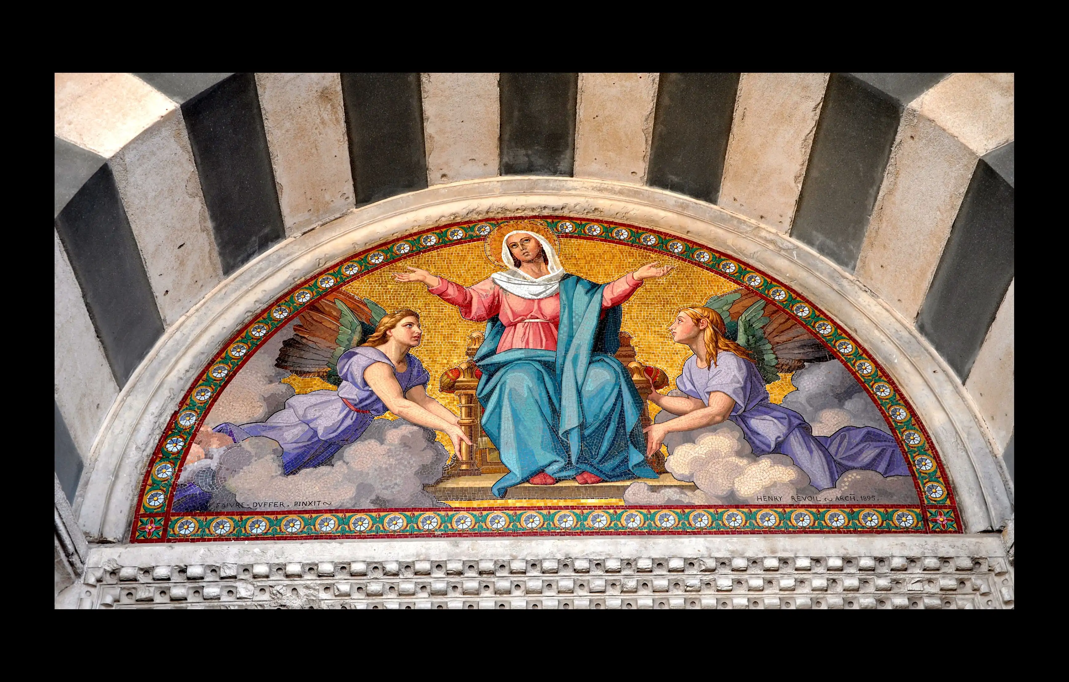 Говорят, что архитектурный стиль собора, построенного в 1853-1864 годах – “нововизантийская базилика”. Вообще-то в архитектуре этого собора совершенно явно присутствуют элементы мусульманского декора, характерного для арабского (мавританского) зодчества Кордовы в Испании или мусульманской архитектуры Каира. Так что это скорее мавританский стиль. Хотя, с другой стороны, ранняя мусульманская архитектура немало позаимствовала у Византийской (Константинопольской, Стамбульской) Ая Софии – Собора Святой Софии.