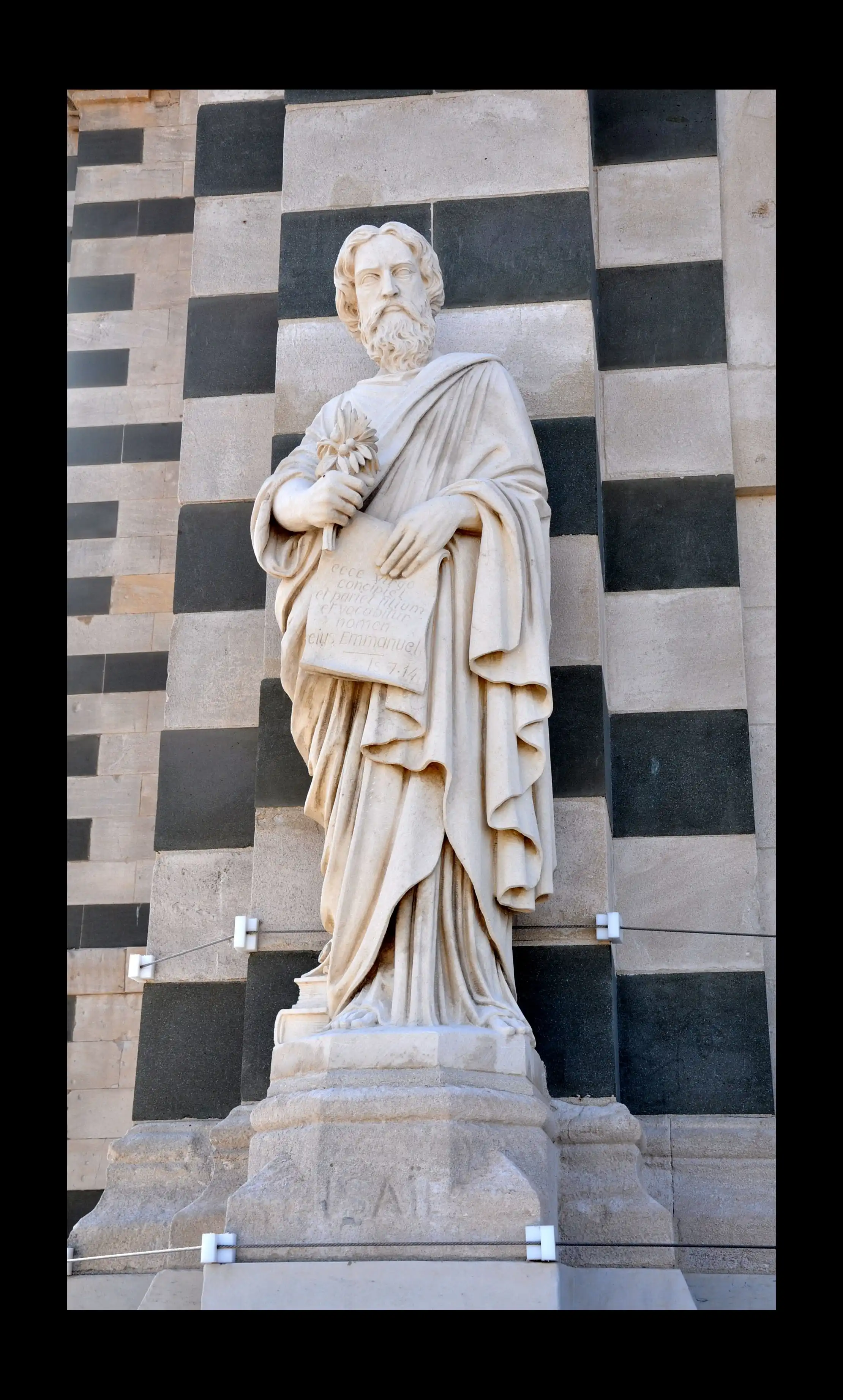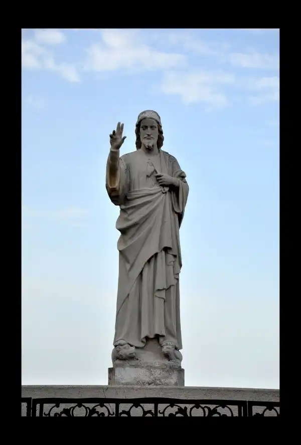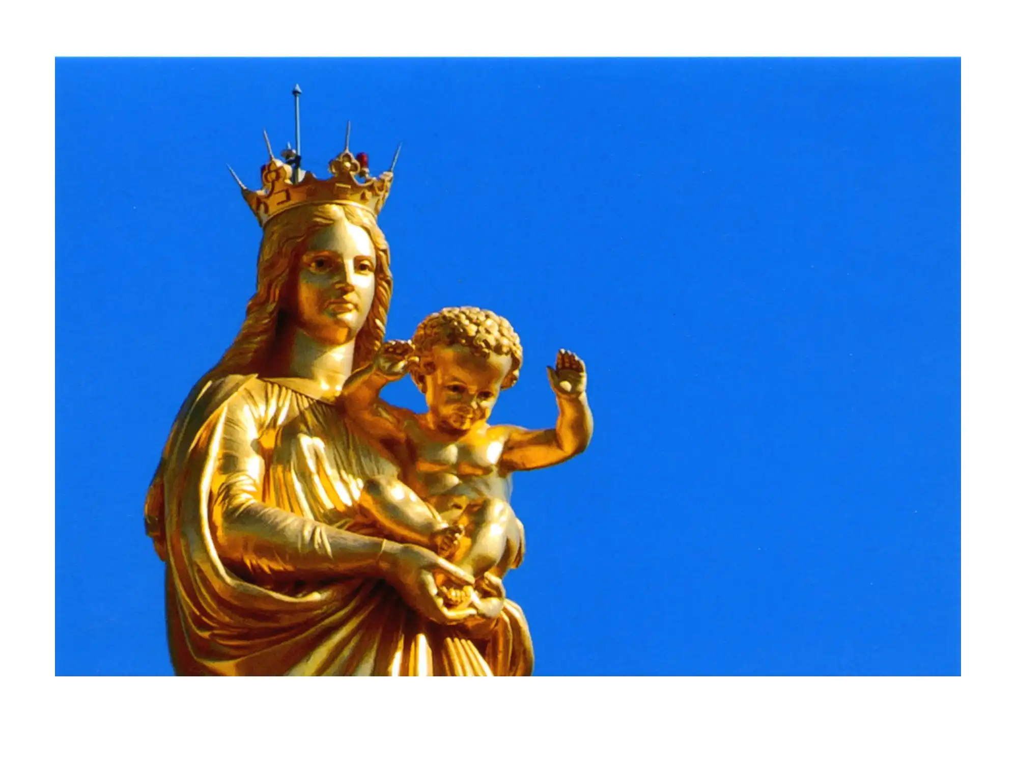 Колокольня собора, высотой 46 метров, увенчана гигантской статуей Богородицы с благословляющим Иисусом-младенцем на руках.