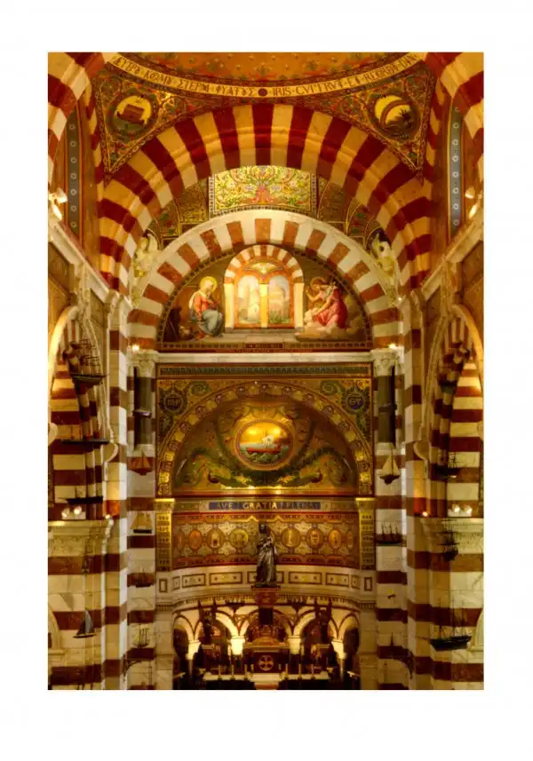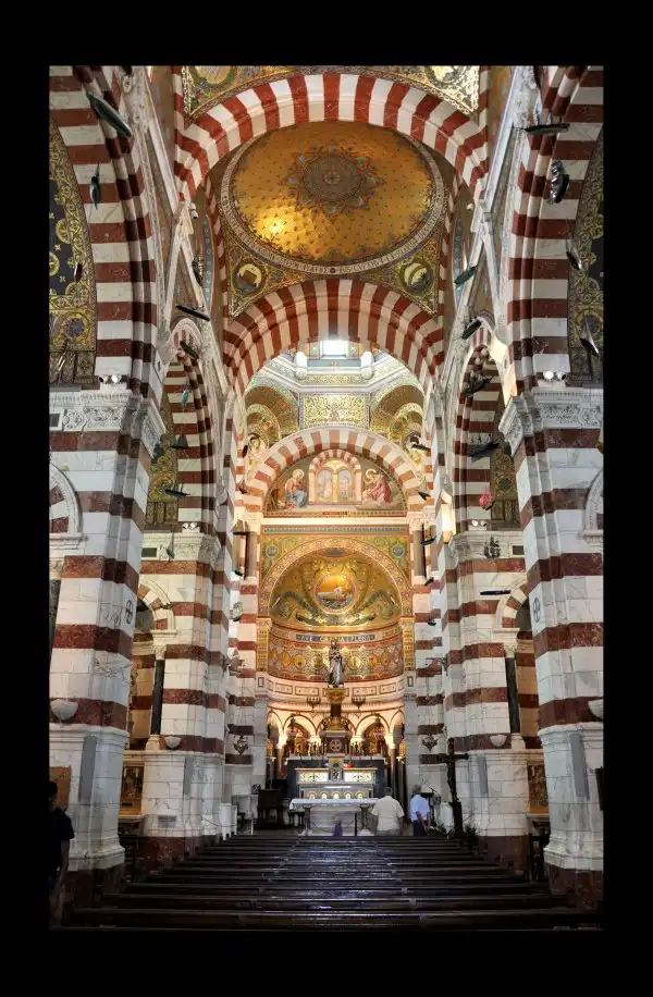 Но Марсельский собор, прихожанами которого были в основном моряки, издревле бороздившие Средиземное море, построен скорее под впечатлением старой мавританской архитектуры, так как Африка – на другом берегу моря, и здешние моряки перед отплытием в дальние страны приходили сюда просить Богородицу о заступничестве в дальнем плавании.