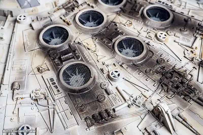 Создание бумажных моделей - это хобби, требующее терпения и навыков, которыми и обладает художник Bernard Szukiel. Тысячелетнего сокола он создавал 4 года. Работа представляет собой точную реплику космического корабля Хана Соло. Корабль состоит из множества деталей, даже есть приборные панели с подсветкой.