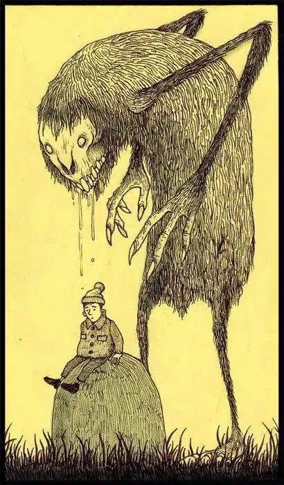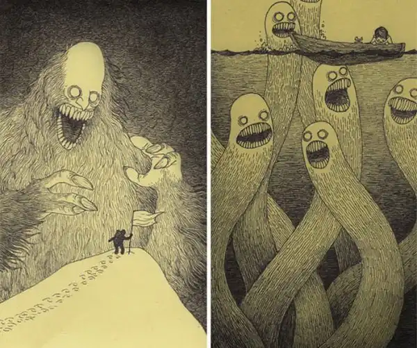 Джон Кенн Мортенсен (John Kenn Mortensen) рисует кошмарных чудовищ из детских воспоминаний на клейких листочках. Джон уже нарисовал огромное количество страшилок. Он известен в интернете под ником Don Kenn.