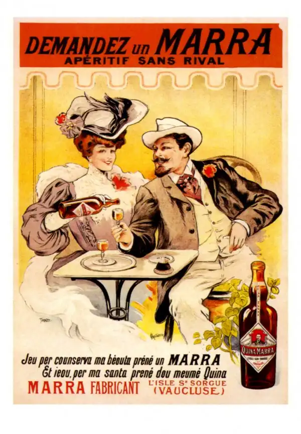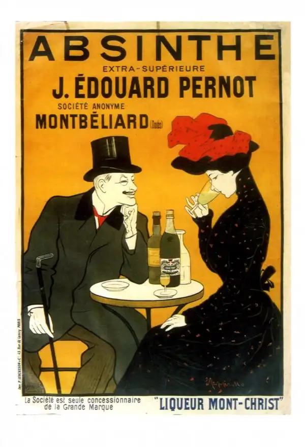 Вот ещё несколько образчиков классического модерна после 1894 года, полностью усвоившего все нововведения Альфонса Мухи. Почтенная публика тех лет, к которой, собственно, и была обращена реклама, отдыхала на водах и курортах, а из напитков предпочитала абсент и малагу. Абсент - 70-градусная настойка на полыни. Весьма интересный напиток по своему эффекту, любимый художниками и богемой тех лет.. Если абсент широко продаётся до сих пор, то о малаге прочно забыли. Это было популярнейшее в те годы сладкое крепкое вино, несколько похожее на кагор.