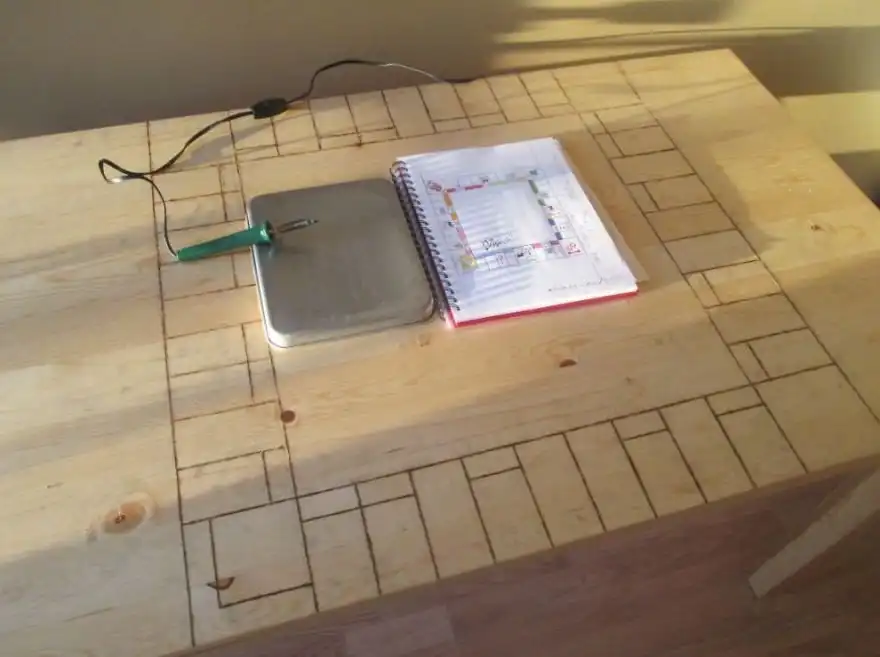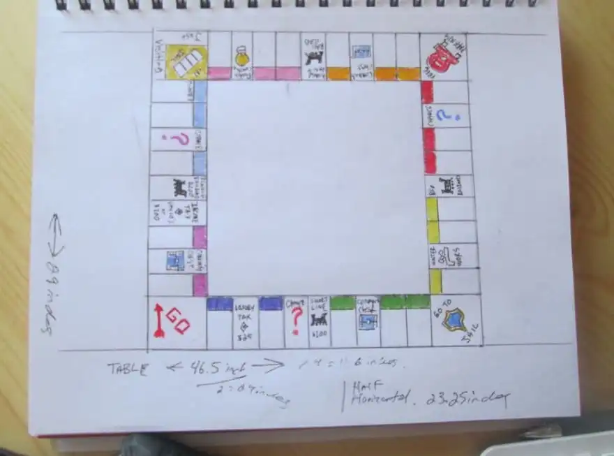 Когда между проектами осталось свободное время, мастер, привыкший работать с холстом и акриловыми красками, решился создать нечто новое. Холстом был выбран обеденный стол, особо с деревом мужчина до этого не работал, лишь пару раз выжигал картины, но он решил превратить столешницу в игровое поле монополии.