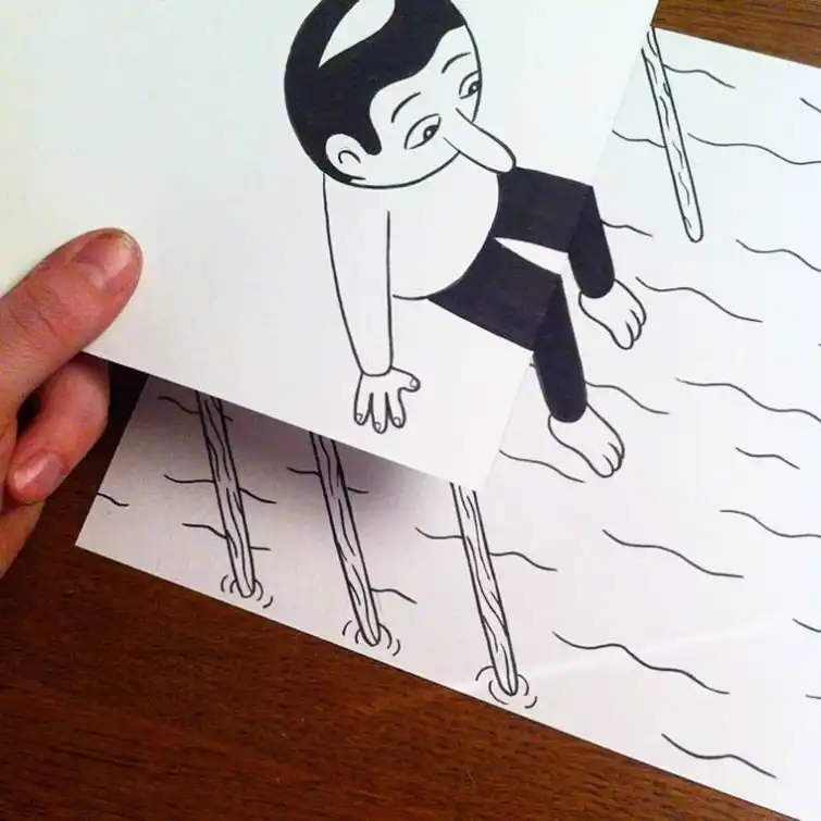 Кто бы мог подумать, что с помощью бумажных изгибов можно создавать впечатляющие оптические иллюзии. Например, об этом мог подумать датский художник из Копенгагена под псевдонимом HuskMitNavn.