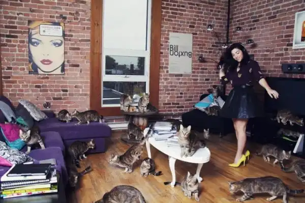 Помните Кошатницу из Симпсонов? Кажется, что у этих людей кошек не меньше, но они, в отличие от героини мультфильма, содержат дома в чистоте и не страдают психическими отклонениями. А потом ты присматриваешься и понимаешь, что кошка на самом деле одна (редко две или три), просто фотораф похулиганила и прилепила в исходную фотографию другие фото тех же кошек.
