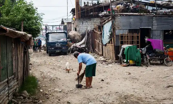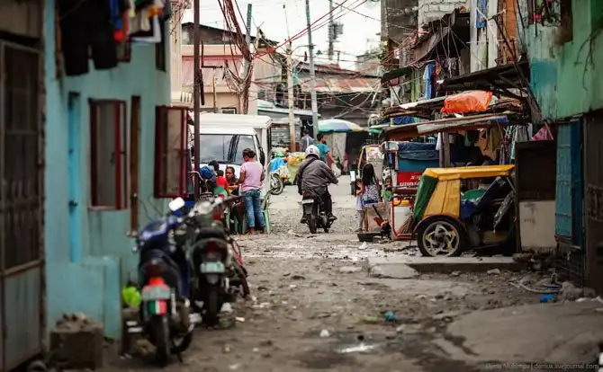 Обычное жилье в трущобах Манилы — это хибары из листового железа. Те кто побогаче складывают свои дома из кирпичей. Трущобные кварталы часто соседствуют с деловыми районами и при этом могут простираться на многие километры.