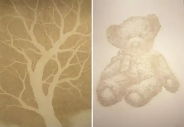 Джихан Парк, художник из Кореи, открыл новую форму пуантилизма (манера письма раздельными мазками правильной, точечной или прямоугольной формы) - используя ароматические палочки, Парк выжигает тысячи крошечных точек в рисовой бумаге до тех пор, пока не появится изображение.