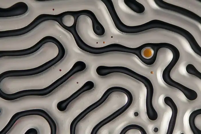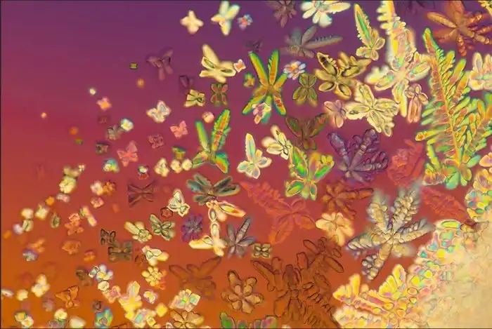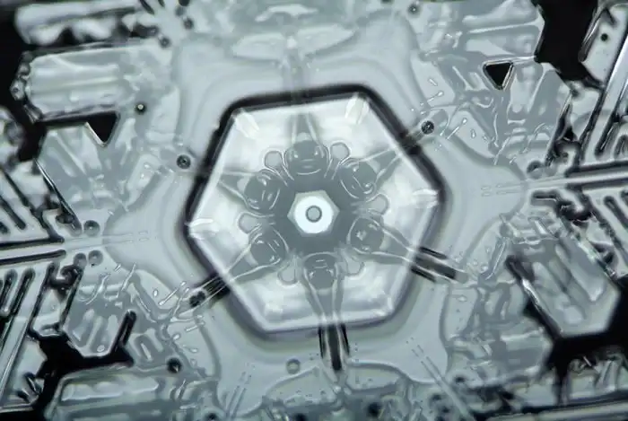Цель художника — с помощью света увидеть необычные стороны привычных предметов: снежинок, мыльных пузырей, пищевых красителей, а также бактерий, кристаллов и ферромагнитной жидкости.