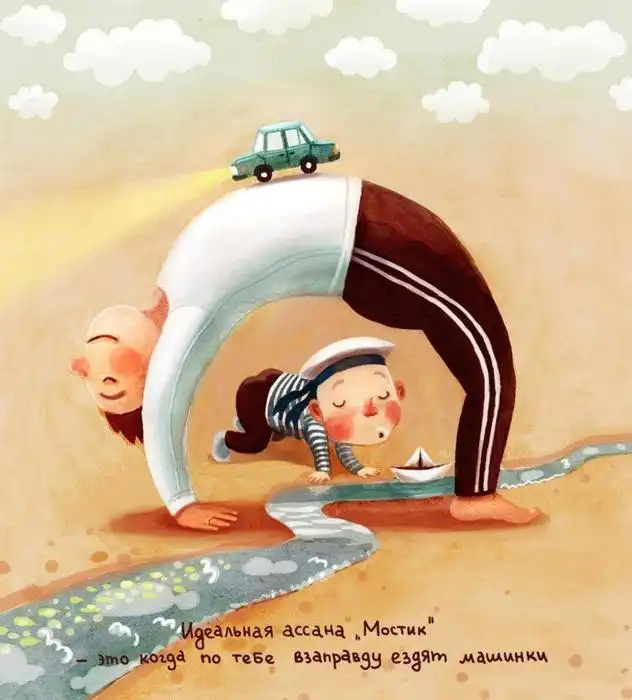 Добрые и забавные рисунки о идеальной йоге от художника-иллюстратора Элины Альмухаметовой.