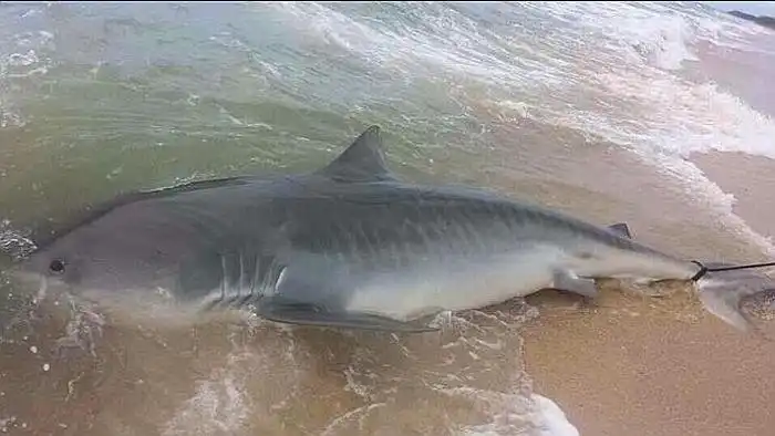 19-летний австралиец поймал 4-метровую тигровую акулу
