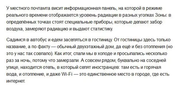 В начале текущего месяца сотрудники известных интернет-компаний побывали на экскурсии в зоне отчуждения Чернобыльской АЭС. По окончании экскурсии был составлен репортаж, который позволит и нам с вами виртуально побывать в загадочном Чернобыле и таинственной Припяти.