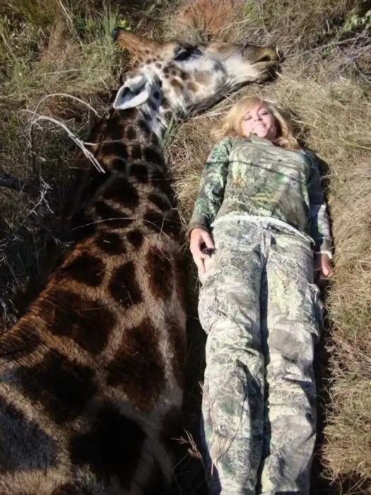 Заядлая охотница Ребекка Фрэнсис из США, обладательница престижной премии Extreme Huntress – 2010, оказалась в центре внимания зоозащитников после того, как на ее странице в Facebook появилась фотография убитого ею жирафа. Широкую огласку снимок получил благодаря британскому комику и актеру Рики Джервейсу, опубликовавшему фото с гневным комментарием у себя на странице в Twitter.