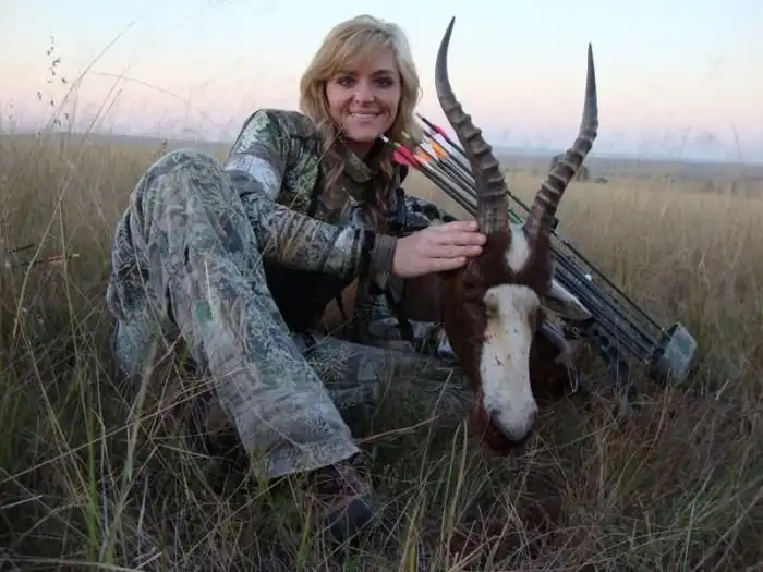 Ребекка, мать восьмерых детей, охотится с ранних лет. Она путешествует по всему миру и при помощи лука убивает экзотических животных. Свое увлечение она не бросала даже в периоды беременности и грудного вскармливания.
