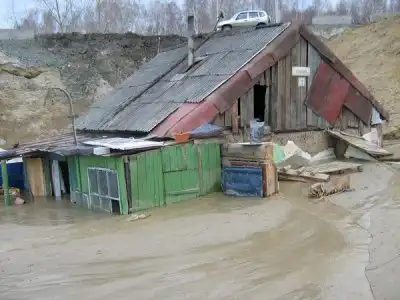 Женщина рыдает на развалинах своего дома, который она не смогла отстоять. Янцзы, провинция Гуанчжоу.